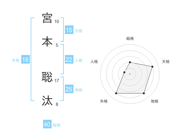 宮本 聡汰さんの名前の鑑定結果は 姓名判断ネット